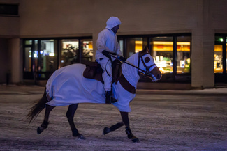 Perinnevaljakkoon kuuluu neljä hevosta ja kaksi ratsuria.