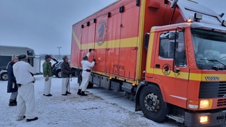 Säkylän varuskunnassa vietettiin Itsenäisyyspäivän juhlaa ja juhlan kunniaksi PorPr kutsui perinnevaljakon esiintymään. Niinisalon ratsastajien tallilla Taulunkylässä valmistauduttiin perjantaina klo 14 kokoamalla varusteita ja myös hevoset lastattiin kuljetusautoon. Mukana oli 6 kiltalaista tykkimiehinä ja 5 ratsastajista ratsureina. Hommaa johti Matti Peurala, joka toimii esityksissä jaosjohtajana ja ajaa myös hevosautoa.