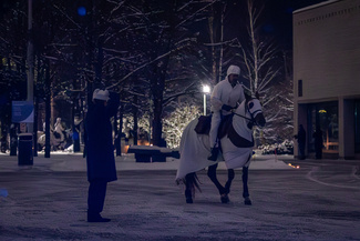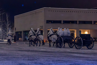 Näytöksissä tunnelmaa luovat ratsureiden historialliset asusteet ja hevosilla menneen maailman varusteet. Ne on tehty Venäjällä 1900-luvun alkupuolella.