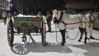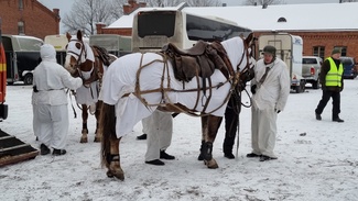 Säkylän varuskunnassa vietettiin Itsenäisyyspäivän juhlaa ja juhlan kunniaksi PorPr kutsui perinnevaljakon esiintymään. Niinisalon ratsastajien tallilla Taulunkylässä valmistauduttiin perjantaina klo 14 kokoamalla varusteita ja myös hevoset lastattiin kuljetusautoon. Mukana oli 6 kiltalaista tykkimiehinä ja 5 ratsastajista ratsureina. Hommaa johti Matti Peurala, joka toimii esityksissä jaosjohtajana ja ajaa myös hevosautoa.